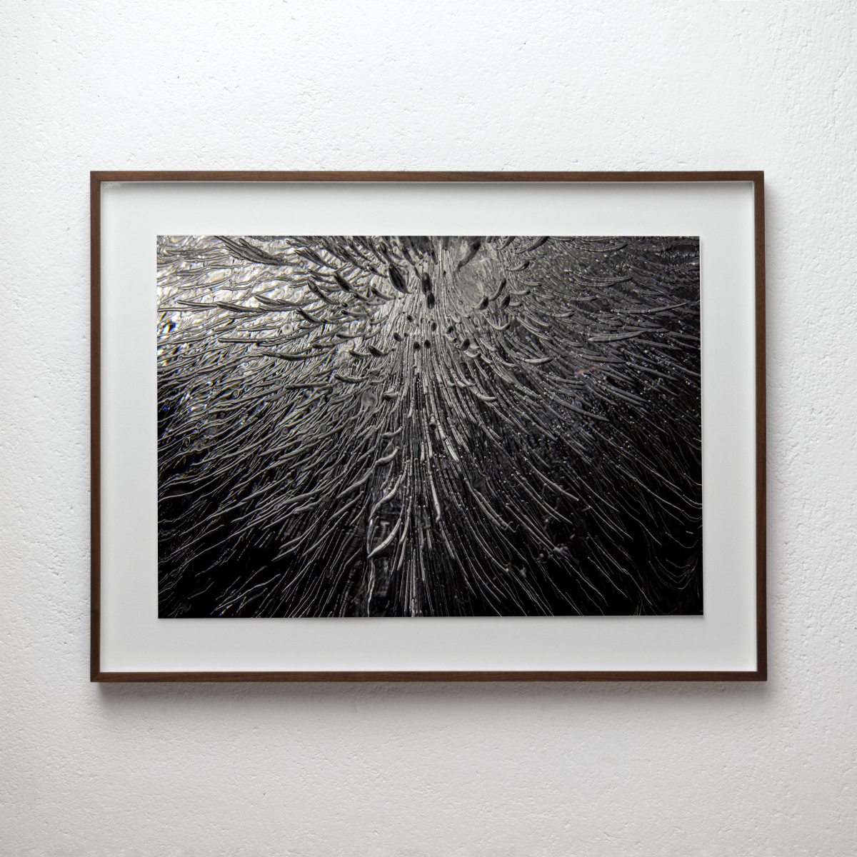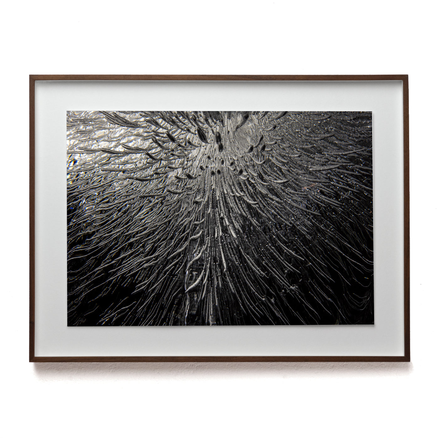 reverse diamond cut float mounted on ivory Japanese conservation board, framed in rose wood behind TruVue museum glass