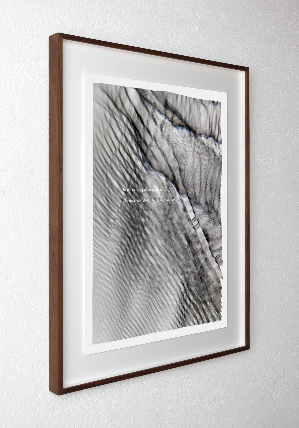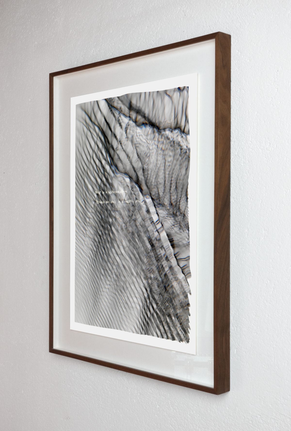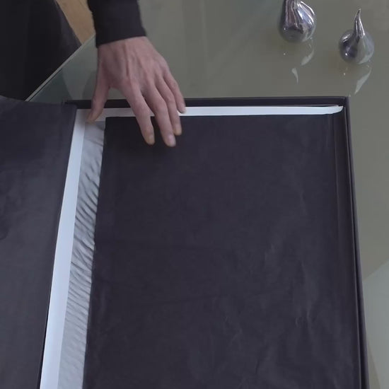 reverse diamond cut float mount on Japanese ivory conservation board, framed in rose wood behind TruVue museum glass