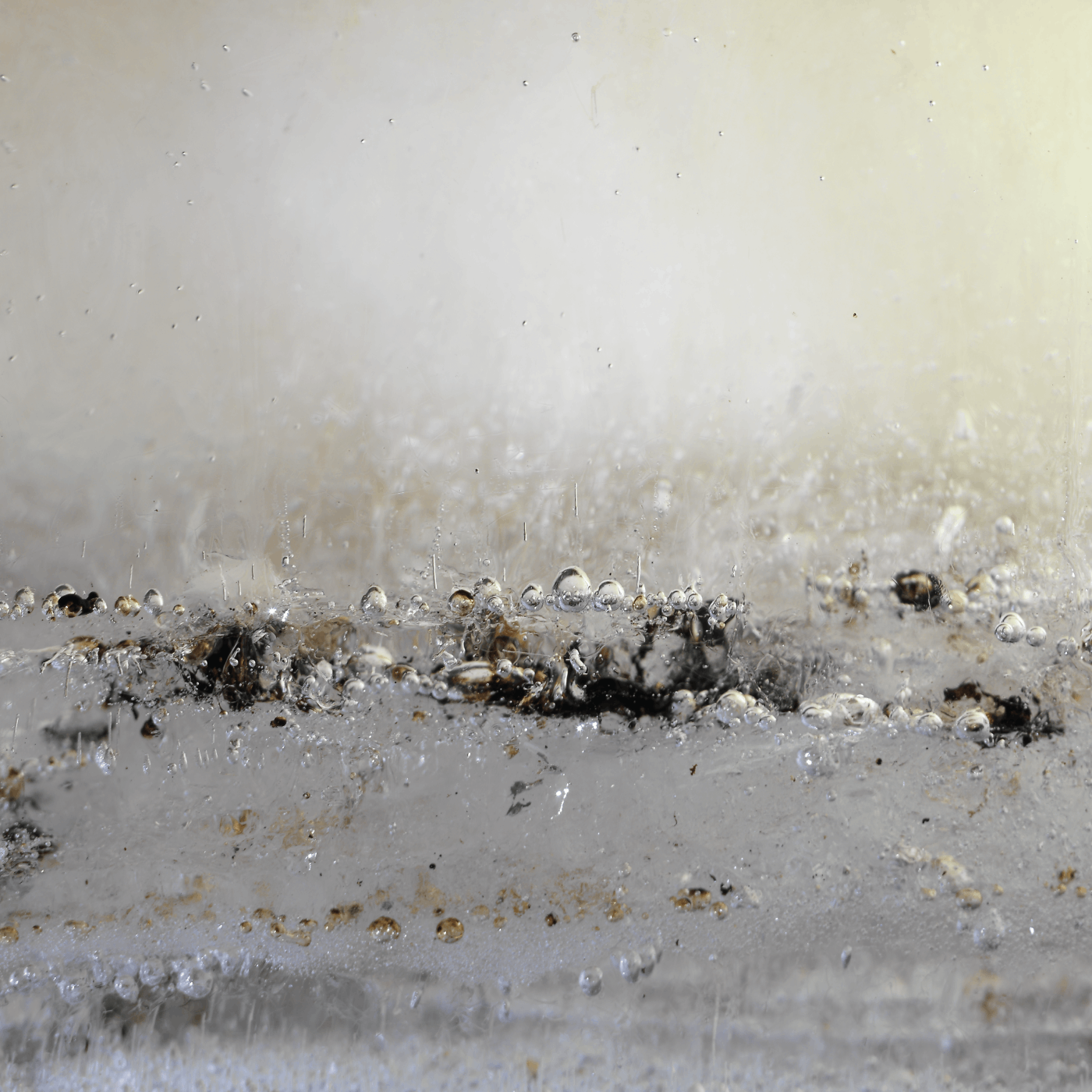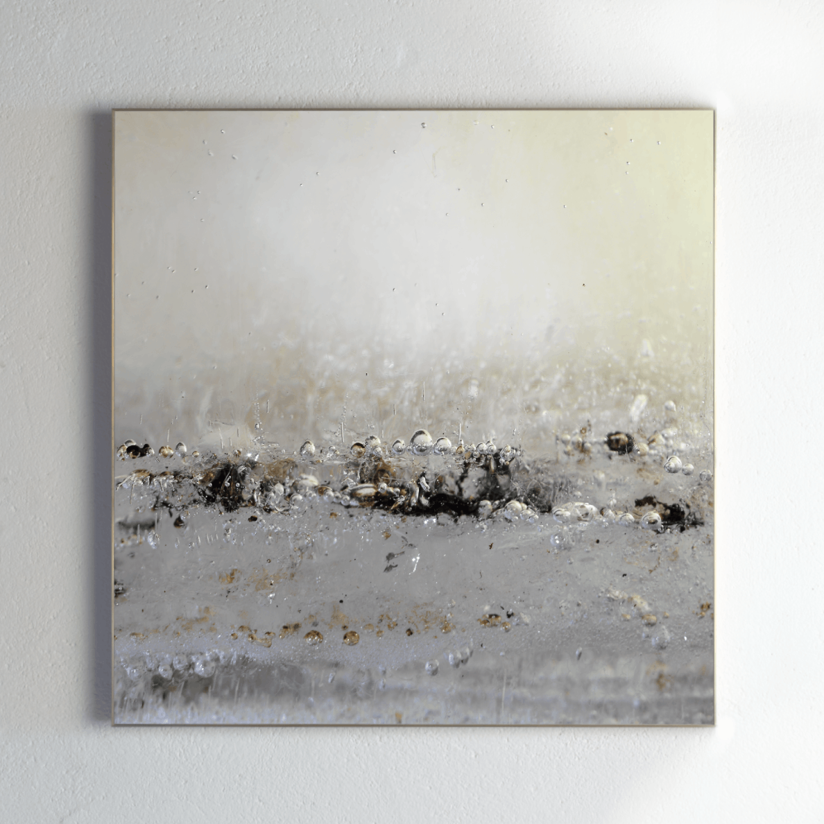 a large ossuary of crude oil & river water taken directly from below the thick ice of the Yenesei river are frozen together in temperatures below minus 50 degrees. This is done in a field studio deep in the forests of Siberia specifically to enable a thermo dynamic process ´enthalpy of fusion´.  Vast pressures are created inside the sculpture, resulting in unrepeatable gas formations, fissures & wax secretions that are then photographed on analogue film plates