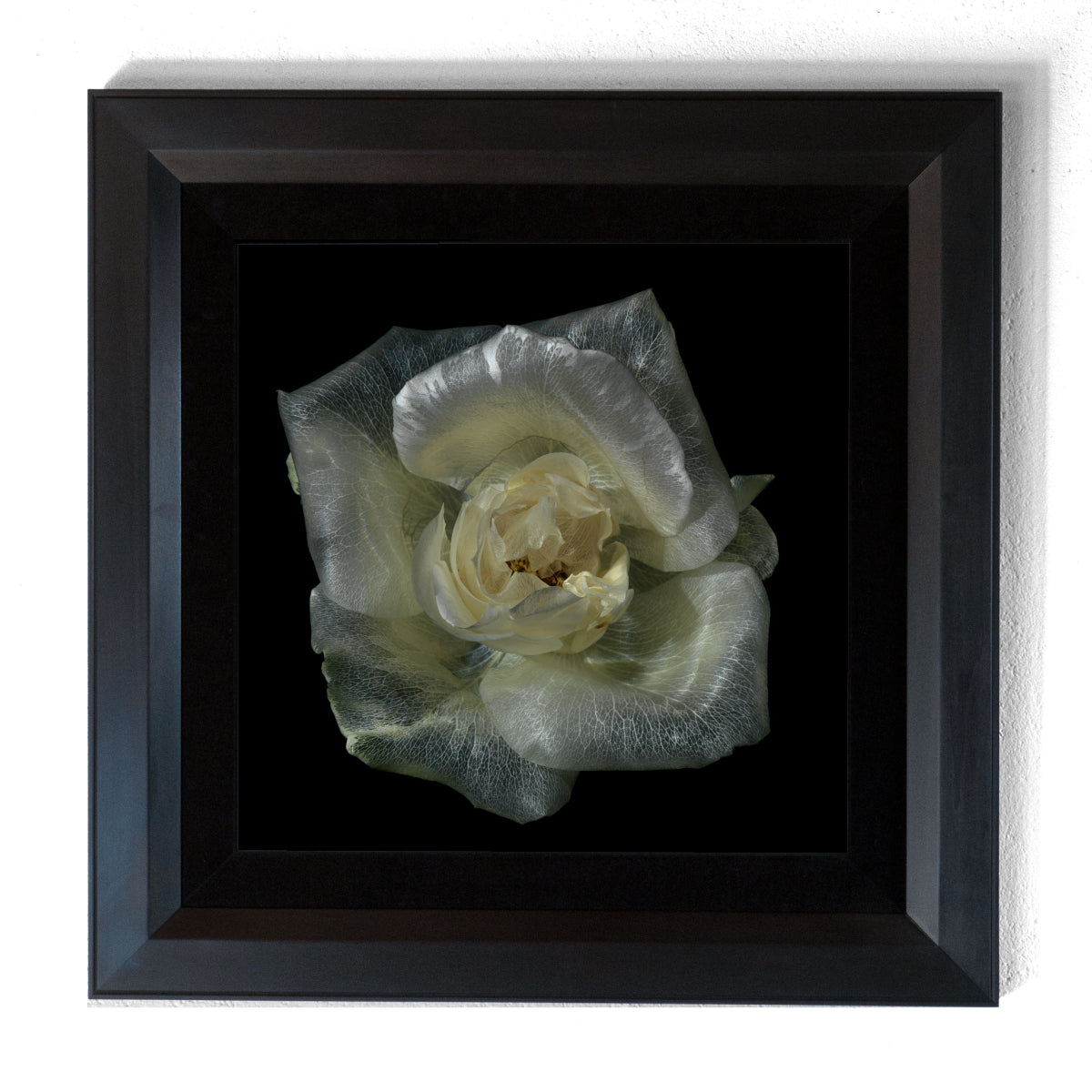 Framed in a black cotton velvet mount, set in an oak sight edged profile.