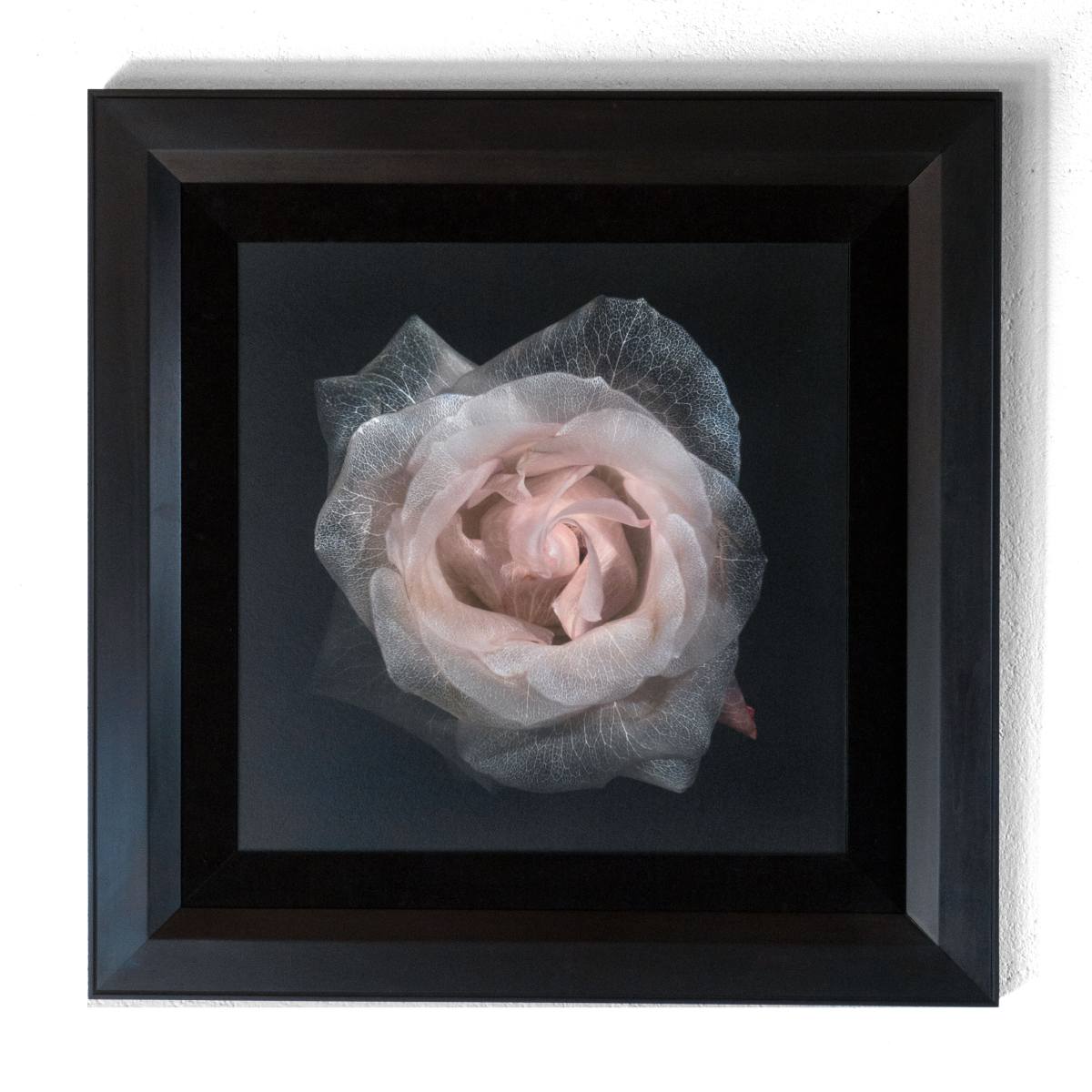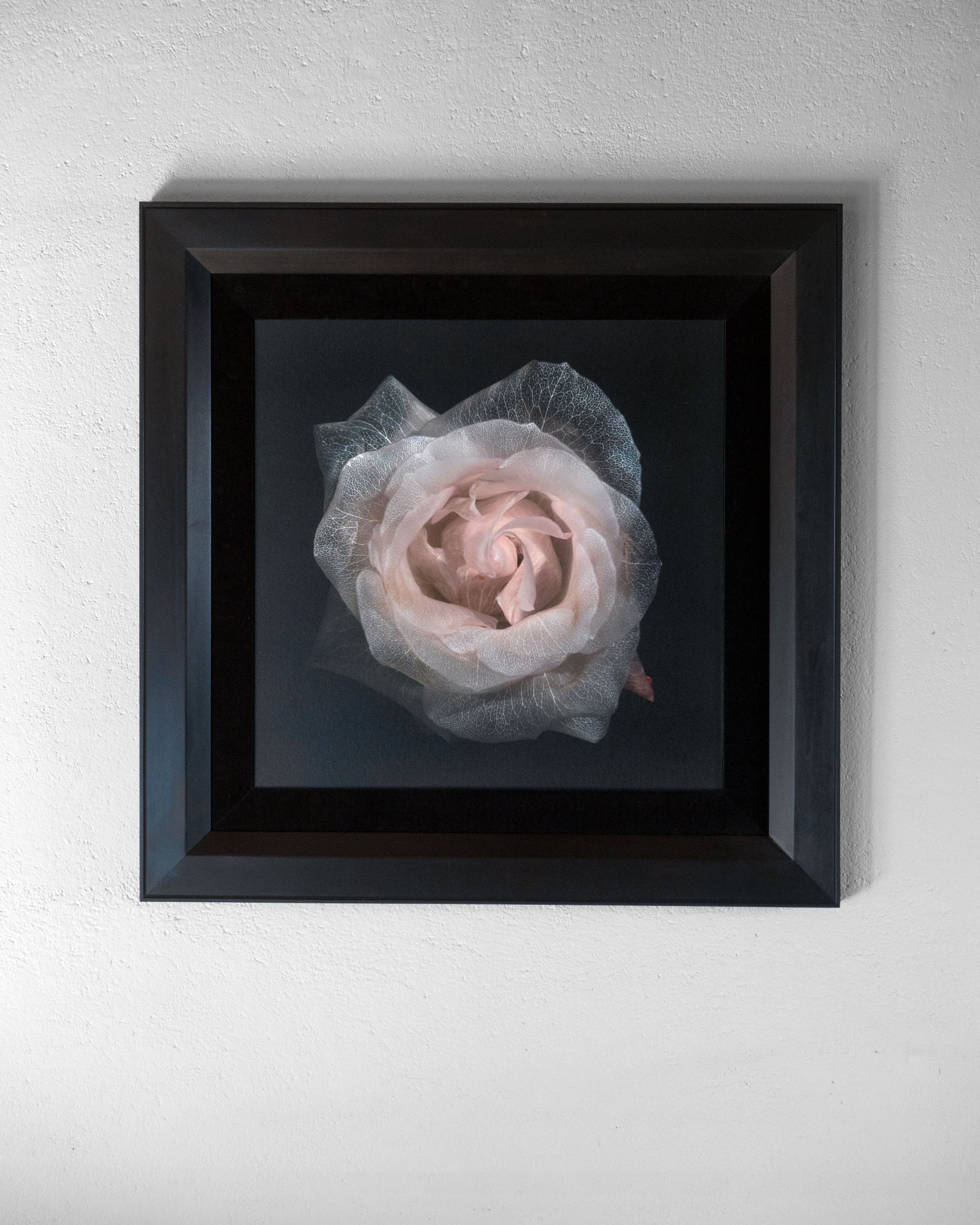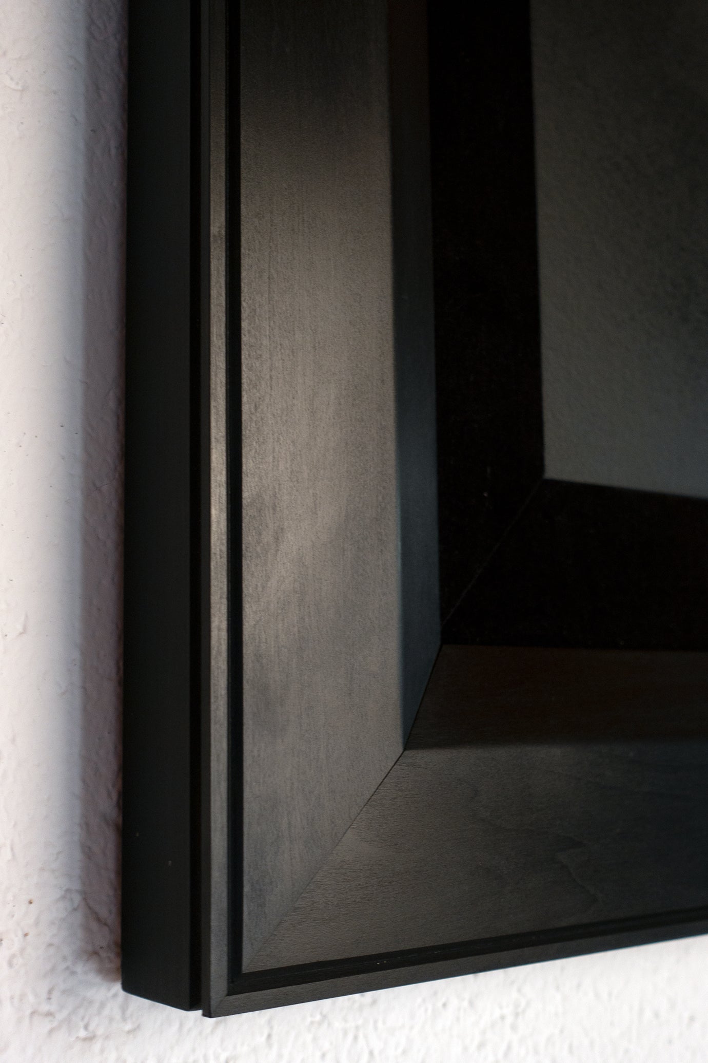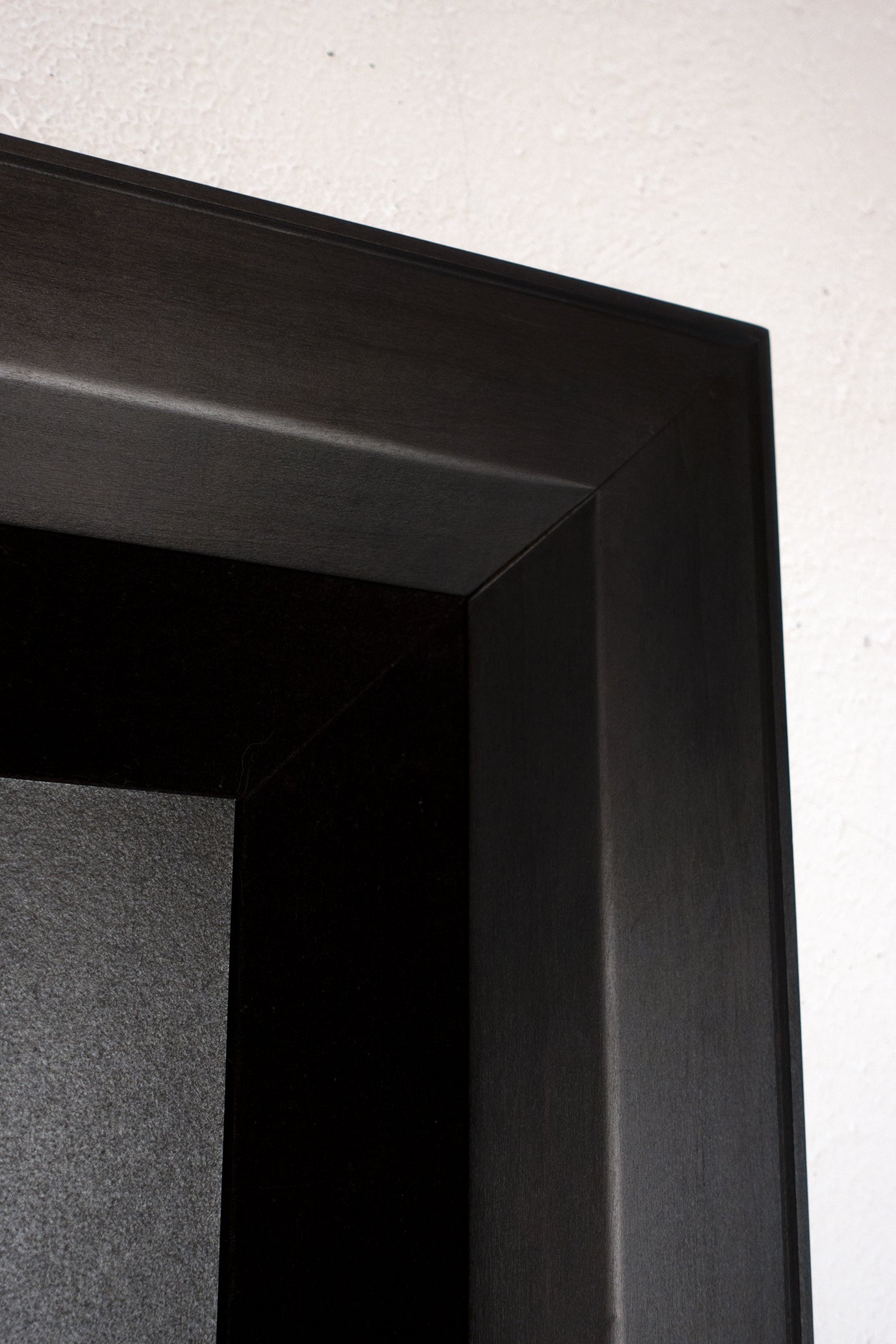 Framed in a black cotton velvet mount, set in an oak sight edged profile.