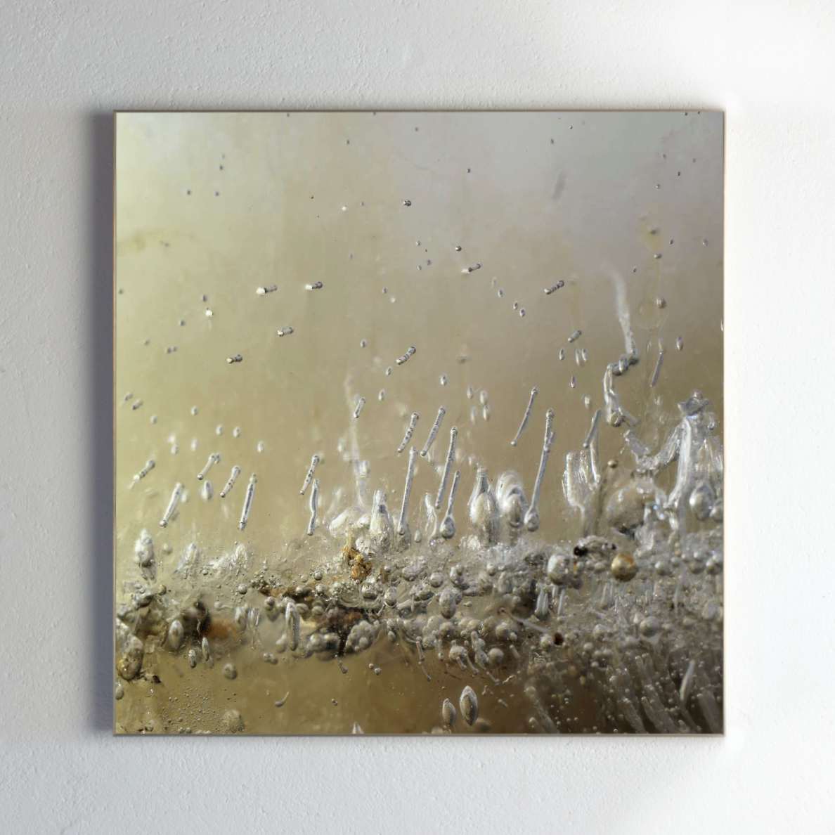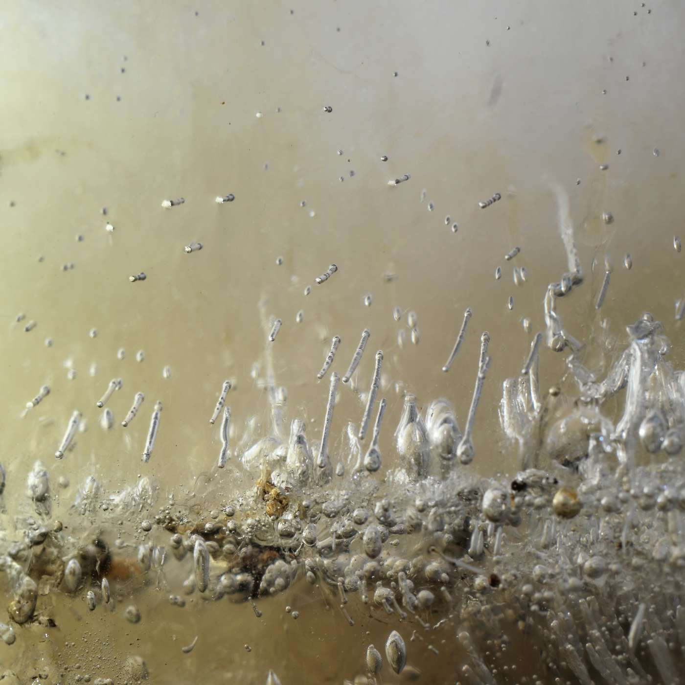 a large ossuary of crude oil & river water taken directly from below the thick ice of the Yenesei river are frozen together in temperatures below minus 50 degrees. This is done in a field studio deep in the forests of Siberia specifically to enable a thermo dynamic process ´enthalpy of fusion´. Vast pressures are created inside the sculpture, resulting in unrepeatable gas formations, fissures & wax secretions that are then photographed on analogue film plates