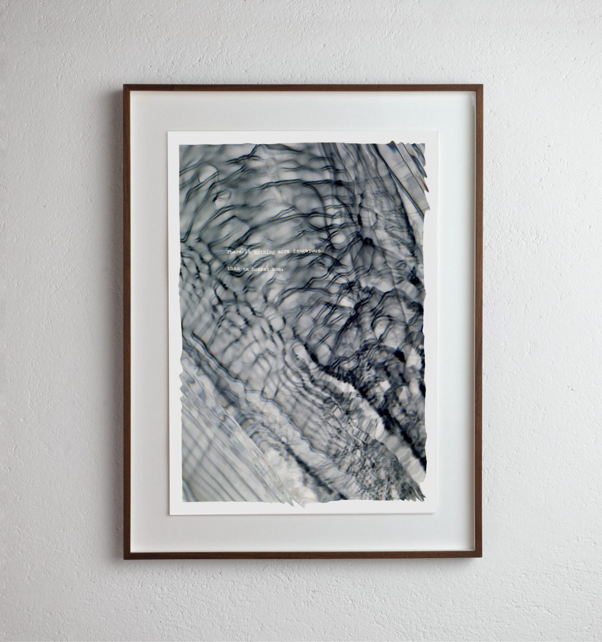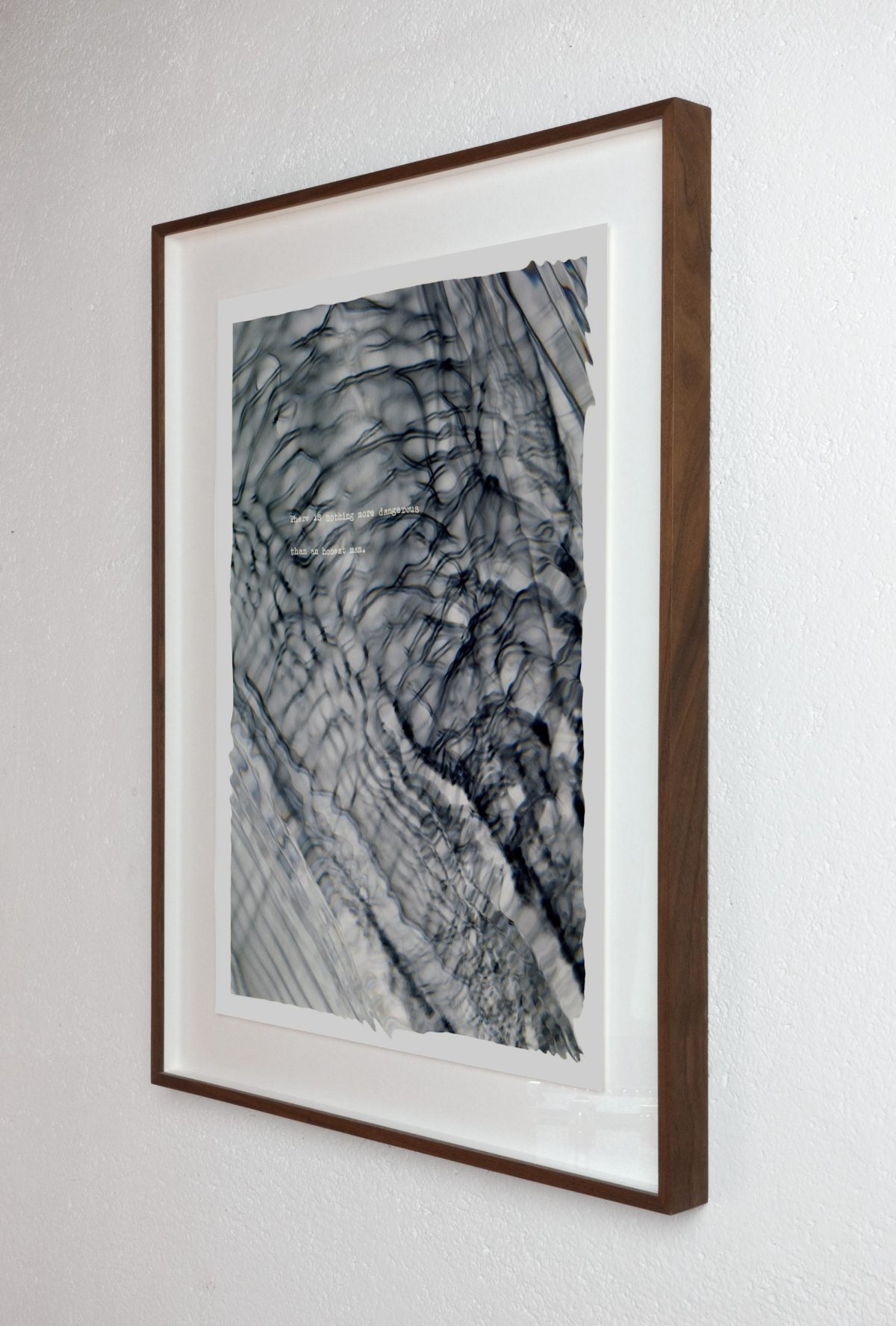 reverse diamond cut float mounted on ivory Japanese conservation board, framed in rose wood behind TruVue Museum Glass